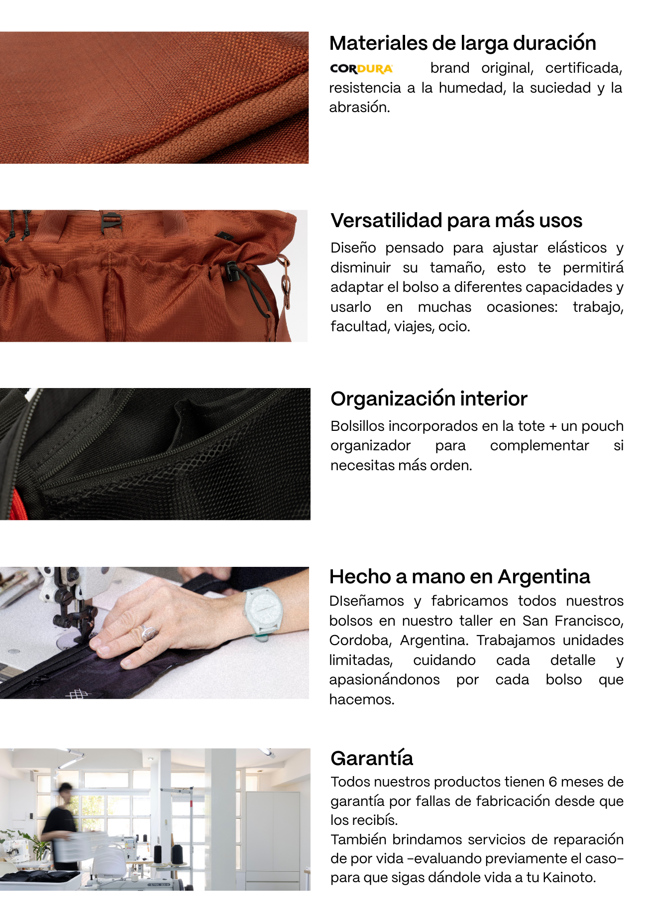 Fabricada en cordura brand certificada. Una tela técnica, resistente al desagarro y al agua.